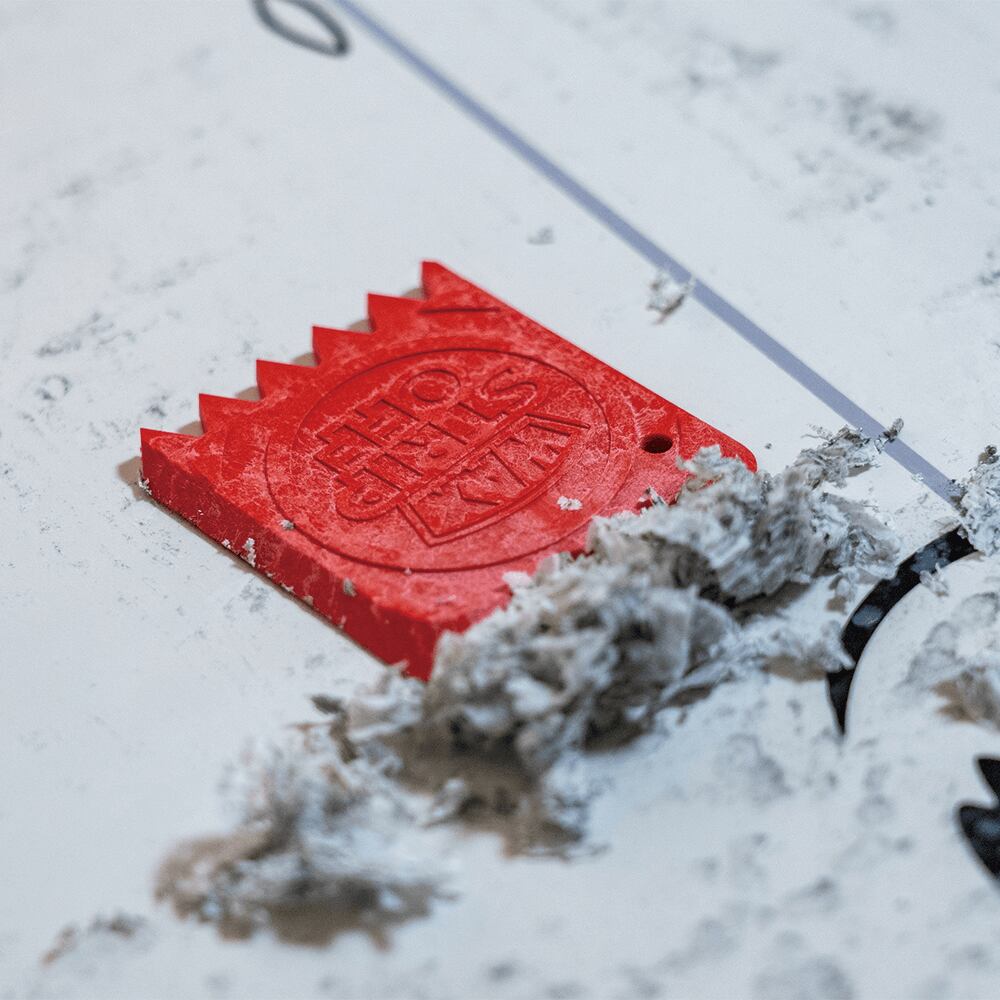セルロースファイバー(CF)を51%配合したバイオマス素材を使用した、サーフボードやスノーボード用のワックススクレーパーセット。