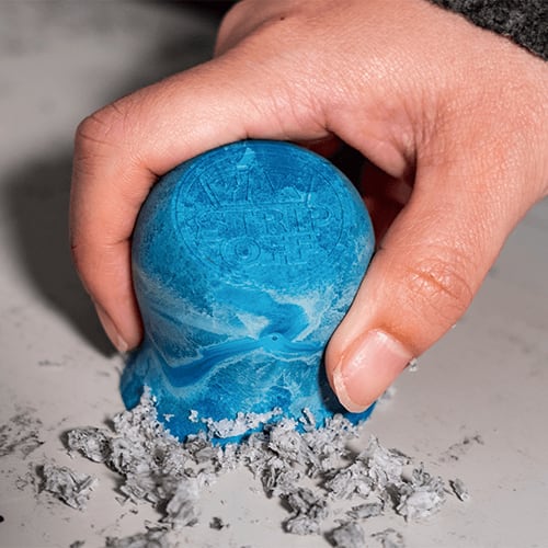 板状スクレーパーでワックス層に傷をつけ、球状スクレーパーで曲面まできれいに剥がすことができます。
